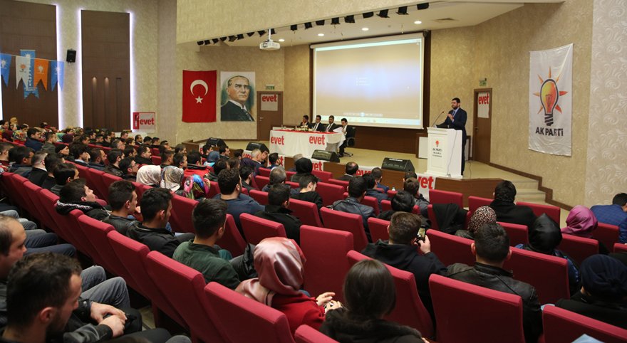 AK Parti Selçuklu İlçe Gençlik Kolları tarafından düzenlenen 'Genç Kürsü' etkinliği kapsamında 'Cumhurbaşkanlığı Hükümet Sistemi Halk Oylaması' konulu eğitim ve bilgilendirme toplantısı gerçekleştirildi.