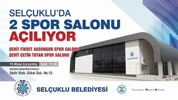 Konya'nın merkez Selçuklu İlçe Belediyesi tarafından yapımı tamamlanan Şehit Çetin Totan ve Şehit Fikret Aksungur Spor Salonları açılıyor.