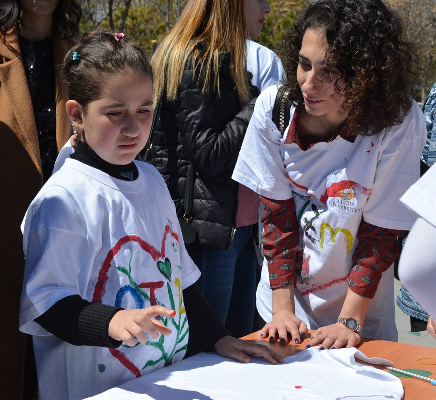 Selçuk Üniversitesi Sağlık Hizmetleri Meslek Yüksekokulu (MYO) öğrencileri, 'Dünya Otizm Farkındalık Günü' dolayısıyla otizmli çocuklarla birlikte tişört boyama etkinliği ve yürüyüş gerçekleştirdi.