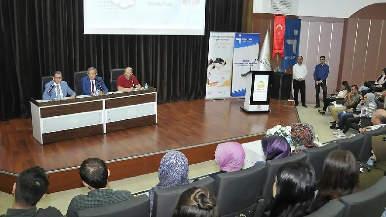 Selçuk Üniversitesi Rektörü Prof. Dr. Mustafa Şahin yaptığı konuşmasında, “Geleceğimiz ve istikbalimiz olan gençlerimiz ile bu programda buluşmak, onlarla birlikte olmak bize çalışma azmi ve gayreti veriyor. Topluma karşı hassas ve duyarlı olan Cumhurbaşkanımıza sizin adınıza teşekkürlerimi iletiyorum. Bizim adımıza da gerçekten önemli bir kazanım çünkü üniversitemizin ihtiyaç duyduğu alanlarda iş gücü imkânına sahip olduk. Bakanımız ve özellikle de Selçuk Üniversitemize karşı her zaman pozitif ayrımcılık yapan İl Müdürümüze de huzurlarınızda teşekkür ediyorum. Günümüz dünyasında hayat şartları giderek zorlaşmakta çünkü dünyaya kapitalizm egemen, kapitalizmin temel mantığı da hep kazanmak sürekli kazanmak, daime kazanmak üzerine kuruludur, karşı tarafa bir şey kazandırma gibi bir derdi, bir algısı yoktur. Yeryüzünde gücü ya da ekonomiyi insanlara yaymayı sağlayabilecek tek sistem İslam’dır. İslam ekonomisi bunu vurgular. İslam felsefesi, çalışanın alın teri kurumadan verin der, yetmedi zekât verin der, yetmedi sadaka verin der, yani amaç toplumsal refahı yaygınlaştırmak, huzurunu arttırmaktır. Bu programda bu vesileyle önemli bir programdır” dedi.