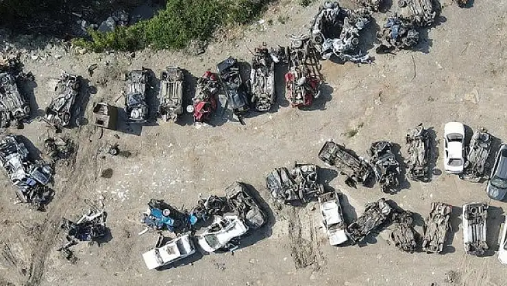 Önüne kattığını denize sürükleyen sel sularının hurda yığınına çevirdiği araçlar, felaketin boyutlarını da gözler önüne seriyor.