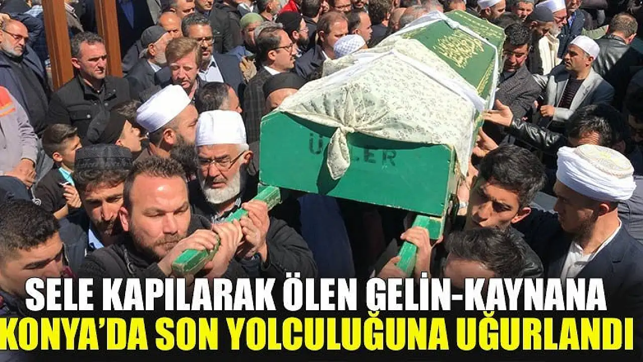 Konya'dan atandığı Şırnak'a giden müezzin Hüseyin Avni Yavuz'un sele kapılıp sürüklenen otomobilinde hayatını kaybeden annesi ve eşi memleketi Konya'da gözyaşlarıyla son yolculuğuna uğurlandı.