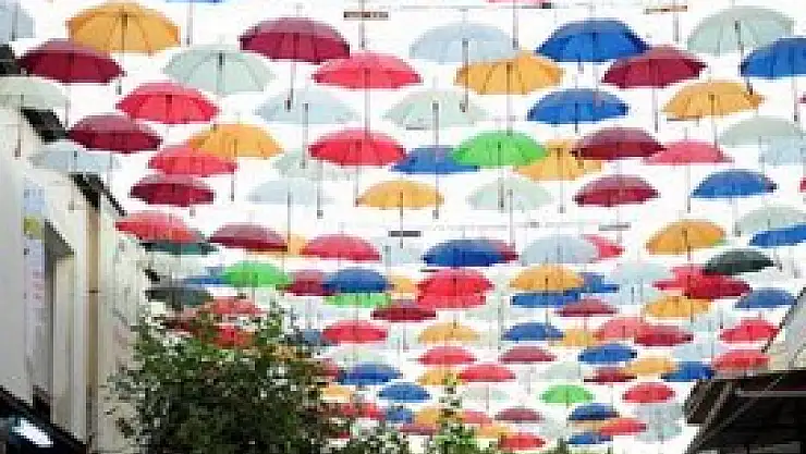 Karşılıklı iki bina arasına uzanan iplere monte edilen farklı renkteki yaklaşık 600 şemsiyenin yer aldığı sokağın açılışını Büyükşehir Belediye Başkanı Mustafa Akaydın yaptı.