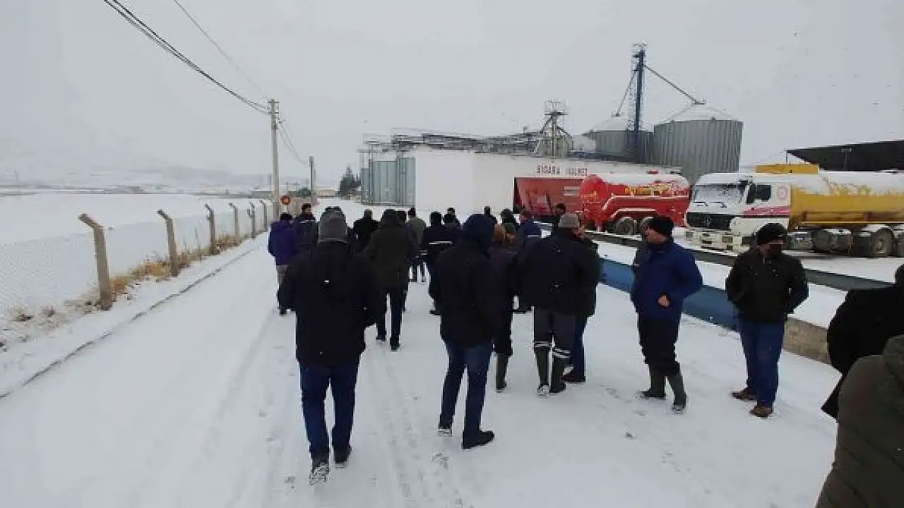 Kayseri'nin Develi ilçesinde sendikalaşmak isteyen işçiler, eylem yaptı.