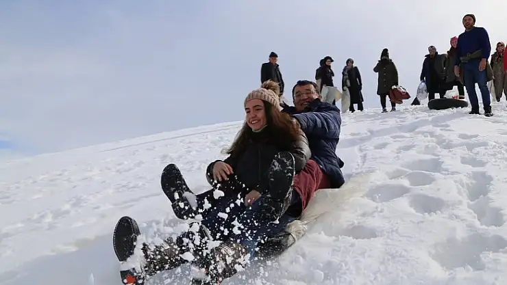 KONYA'nın Hadim ilçesinde kar kalınlığı 2 metreyi bulan Armağan Yaylası'nda, bir dernek tarafından kayak şenliği düzenlendi. Şenliğe katılanlar naylonlar, lastiklerin içi ve ikiye bölünmüş bidonlarla kayak yaptı.