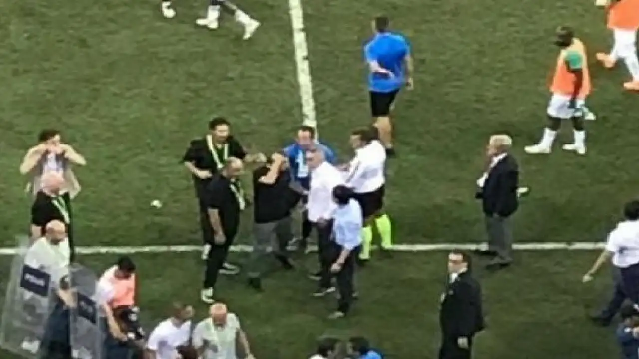 Maç biter bitmez tribünlerden atılan su şişelerinden biri Şenol Güneş'in başını sıyırdı. daha önce Bursaspor teknik direktörlüğü de yapan Şenol Güneş, bunun üzerine 4. hakeme gitti ve durumu aktardı. Güneş, ayrıca Samet Aybaba'ya da dert yandı.