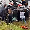 BURSA'ya gelen TBMM Başkanı Mustafa Şentop'un koruma ekibinin bulunduğu otomobil, aşırı yağış nedeniyle kontrolden çıkıp, şarampole devrildi.