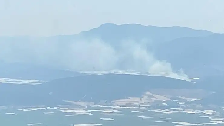 Yangın, saat 14.30 sıralarında Çamönü Mahallesi'ndeki bir serada çıktı. Rüzgarın etkisi ile alevler ormana sıçradı. İhbarla bölgeye İzmir Orman Bölge Müdürlüğü'ne ait 2 uçak, 3 helikopter, 13 arazöz ve 3 su tankeri sevk edildi. Yangını kontrol etmek için çalışmalar sürüyor. (DHA)