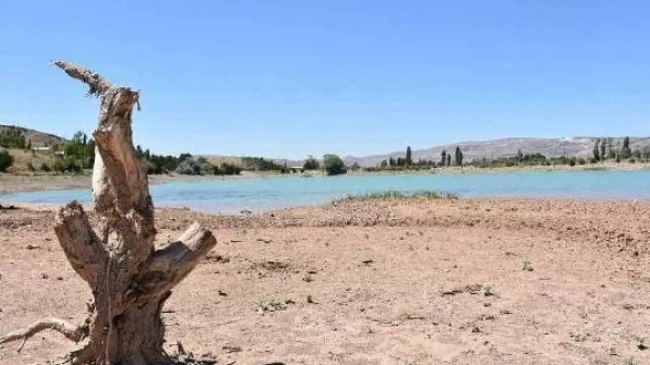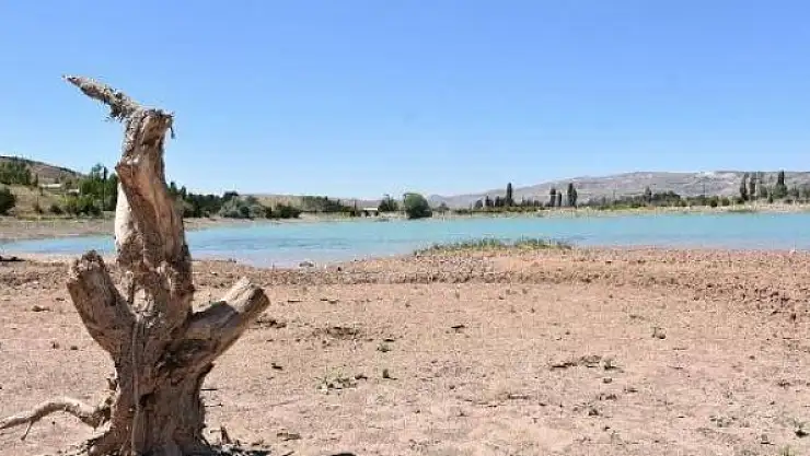 Sivas'ta, kent merkezi yakınlarında bulunan Serpincik Göleti'nin suyu, kıyıdan 30 metre çekildi. Su altında kalan ağaç köklerinin ortaya çıktığı gözlendi.
