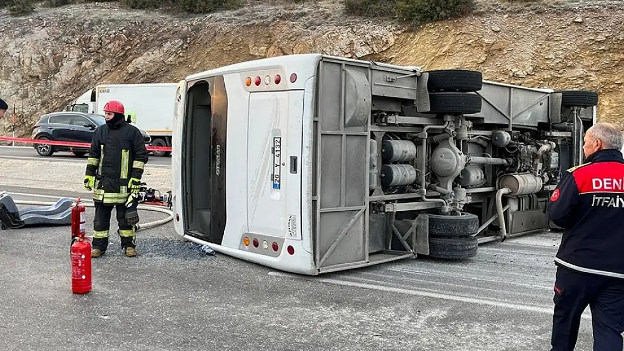 Antalya-Denizli kara yolu Serinhisar ilçesi girişinde 20 Y 4132 plakalı servis midibüsü, ilk belirlemeye göre buzlanma nedeniyle kontrolden çıkarak karşı şeride geçti ve devrildi.