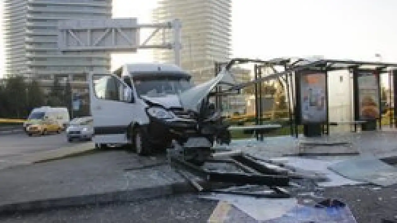 Servis aracı otobüs durağına çarptı