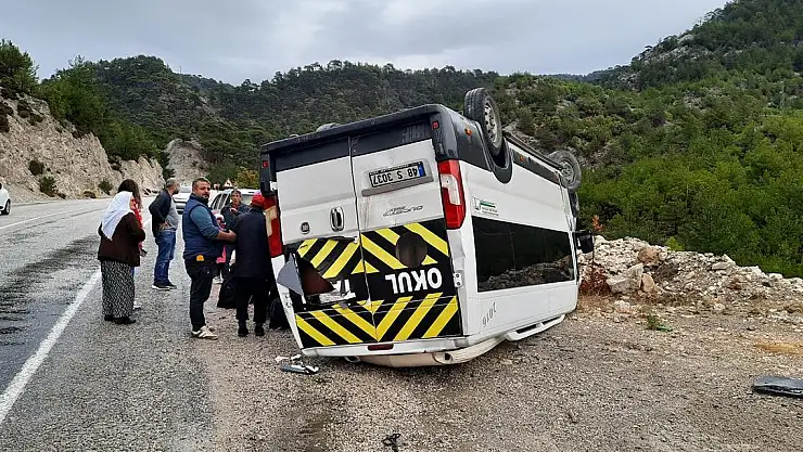 Alınan bilgiye göre, rehabilitasyon öğrencilerini taşıyan Talha B. yönetimindeki 48 S 3037 plakalı servis minibüsü, Fethiye-Antalya kara yolu Karabel mevkisinde devrildi.