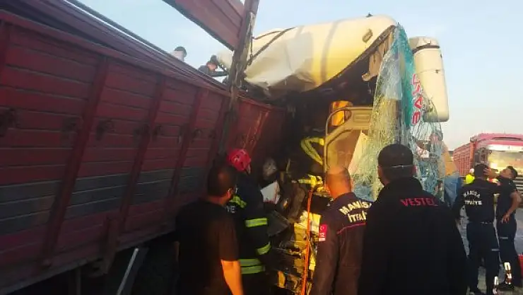 MANİSA- Turgutlu kara yolunda fabrika içşilerini taşıyan servis otobüsü, demir yüklü kamyona arkadan çarptı.