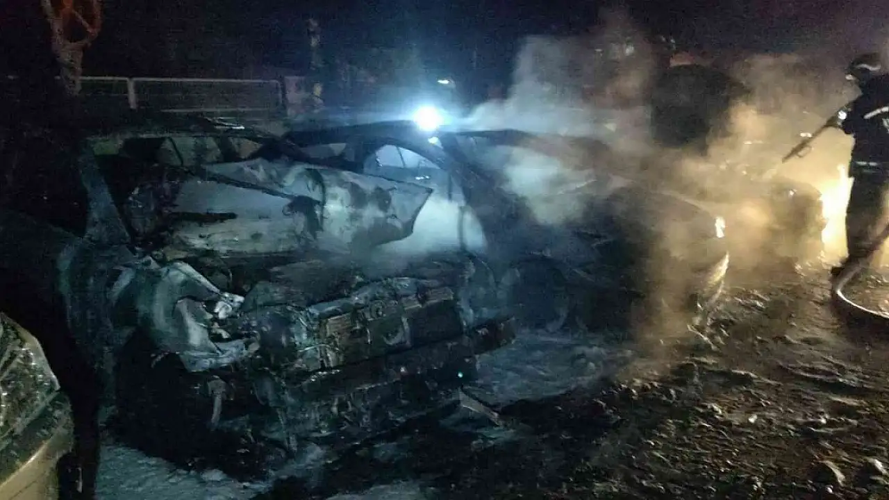 Servis otoparkında arızalı 5 araç alev alev yandı