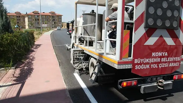 Konya Büyükşehir Belediyesi Ulaşım Daire Başkanlığı ekipleri ve Seydişehir Belediyesi Fen İşleri Müdürlüğü ekiplerinde trafik güvenliği sağlamak amacıyla asfalt yol çizgi çalışmalarını sürdürüyor.