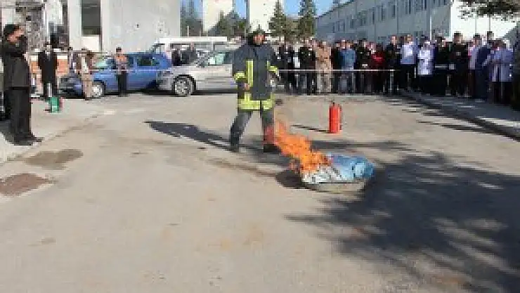 Eğitimin ardından hastane bahçesinde yangın söndürme cihazları kullanılarak, görevli personel tarafından yangın çeşitlerine göre müdahale gösterildi.