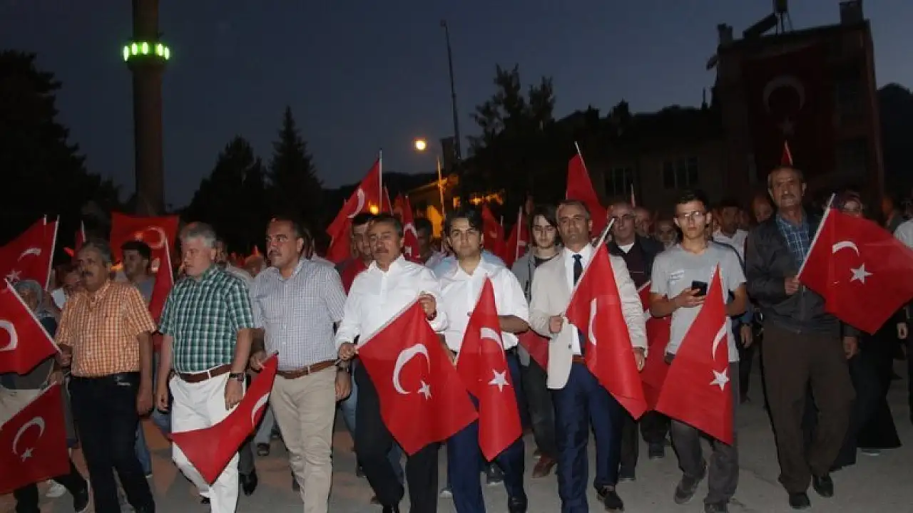 Programa Kaymakam Aydın Erdoğan, Belediye Başkanı Mehmet Tutal, Cumhuriyet Başsavcısı Bünyami Korkmaz,AK Parti İlçe Başkanı Mustafa Konurer , MHP İlçe Başkanı Abdullah Söğüt, İlçe Müftüsü Kemal Demirel , daire müdürleri, STK başkanları ve binlerce vatandaş katıldı.