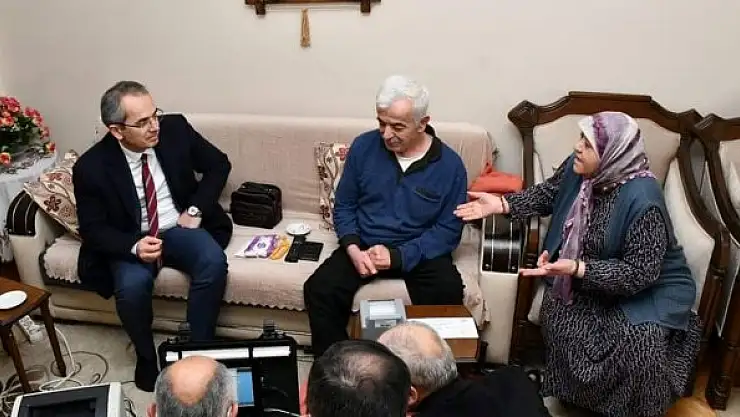 Kaymakam Deniz Pişkin ve İlçe Nüfus Müdürü Adem Sezek, bedensel engelli Mehmet Kurnaz'ı evinde ziyaret ederek, yeni kimlik değişimini evinde gerçekleştirildi.