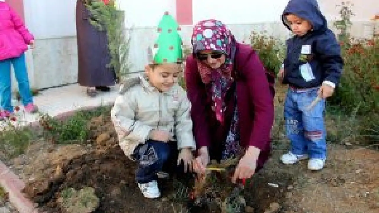 Seydişehir TOKİ Anaokulu öğrencileri okul bahçesine çam, mavi ladin, sedirden oluşan 2 bin fidanı dikti.