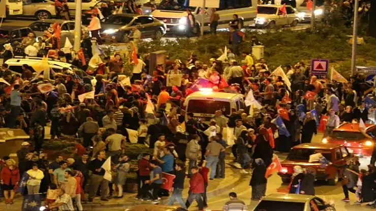15 Temmuz Milli İrade Meydanında başlayan Havai fişek gösterilerinin de gerçekleştirildiği kutlamalarda, konvoya katılanlar kornalar çalarak saatlerce süren sevinç gösterilerinde bulundu.