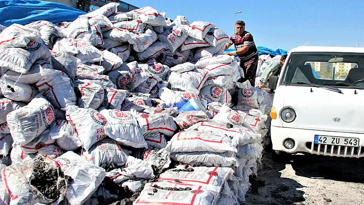 Konya'nın Seydişehir ilçesinde, Sosyal Yardımlaşma ve Dayanışma Vakfı tarafından ihtiyaç sahiplerine kömür dağıtımı yapılıyor.