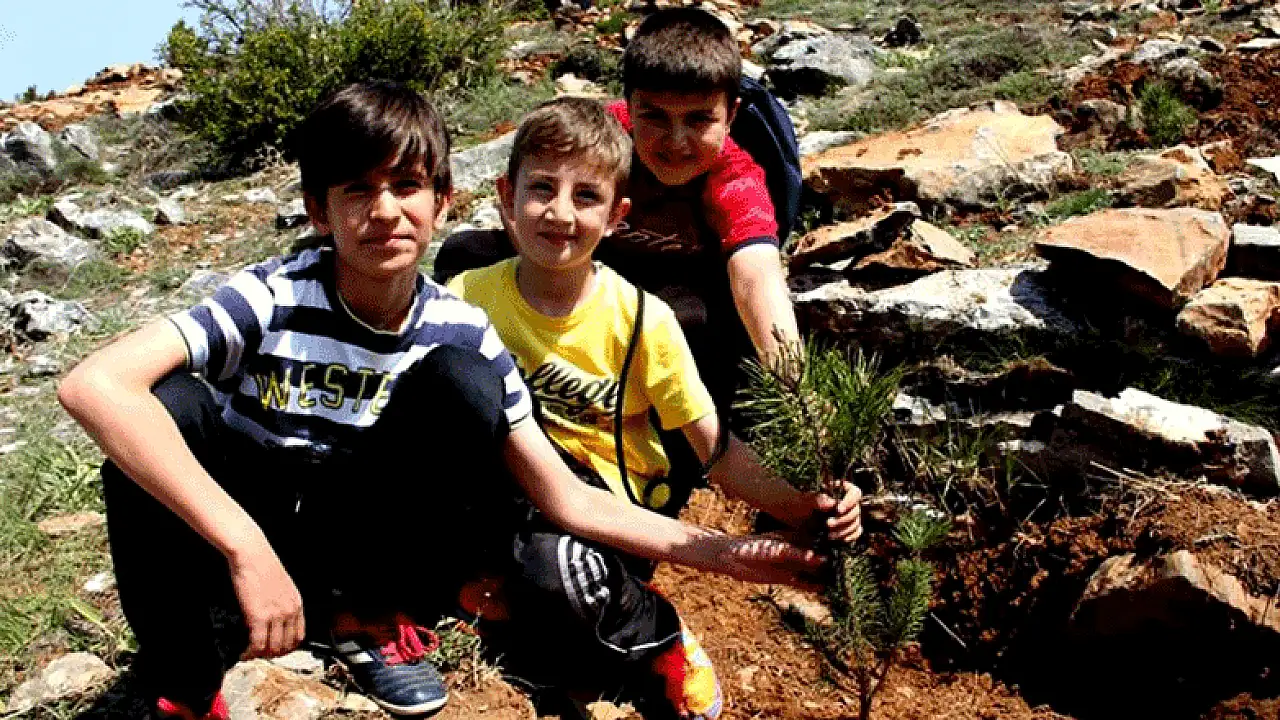 Konya'nın Seydişehir ilçesinde Merkez İlkokul öğrencileri, 'Yeşil Bir Seydişehir' sloganıyla fidan dikim etkinliği düzenledi