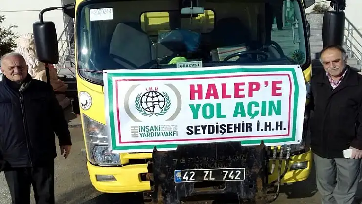 Seydişehir'de başlatılan Halep'e yol açın kampanyasında toplanan gıda, giyim, ilaç yardımlarından oluşan bir tır malzeme Haleplilere gönderildi.