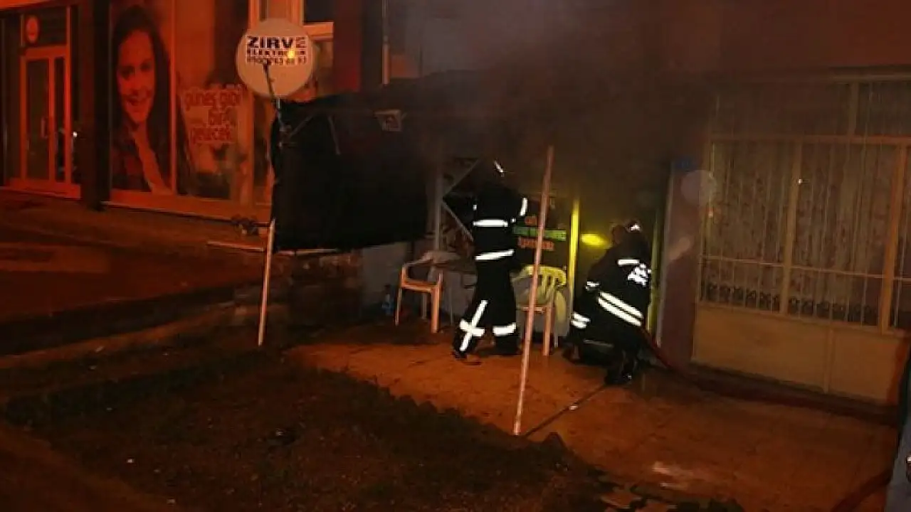 Alaylar 2 Mahallesi Şehit Kemal Sert Caddesi'nde 4 katlı bir binanın altında bulunan İsa Bodur'a ait kokereç dükkanında yangın çıktı.