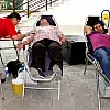 Merkez Ortaokulu bahçesinde düzenlenen kampanyaya vatandaşlar destek veriyor. Kan veren vatandaşlar, kan guruplarını öğrenirken, kan bağışı hakkında da bilgilendiriliyor.