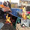 Hava sıcaklığının gece eksi 27, gündüz ise eksi 18 dereceye kadar düştüğü Seydişehir'de pazar esnafı, tezgahlarının yanına koydukları soba ve tenekelerde yaktıkları ateş ile ısınıyor.