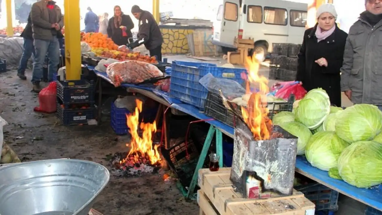 Pazarda alışveriş yapan vatandaşların da kimi zaman esnafın yaktığı ateşte ısındığı görüldü.