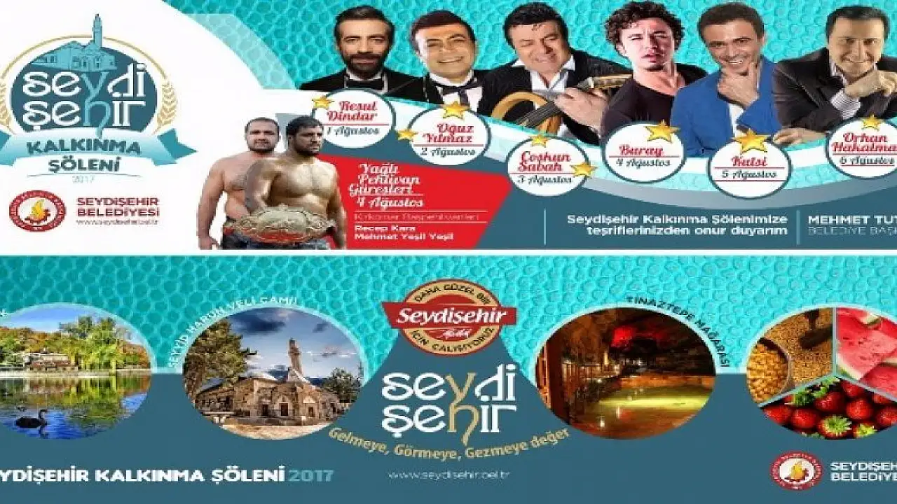 Seydişehir Belediyesi yerel kültürü gelecek nesillere aktarmak ve tanıtmak amacıyla 1-6 Ağustos tarihleri arasında Kuğulu mesire alanında Kalkınma Şöleni düzenliyor.Şölen boyunca Seydişehir'in kültürünü her yönüyle tanıtacaklarını ifade eden Belediye Başkanı Mehmet Tutal;" Şölenimiz yarın itibari ile başlıyor. Seydişehirli hemşehrilerimizi ve misafirlerimizi birbirinden değerleri sanatçılarımızla buluşturacağız" dedi.