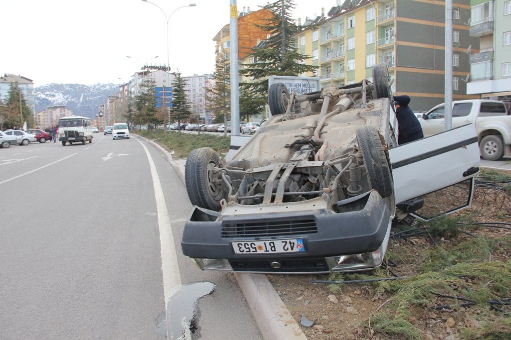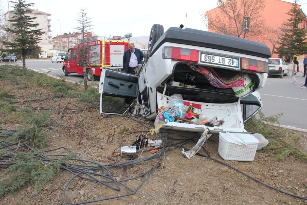 Alınan bilgiye göre, Mahmut Esen yönetimindeki 42 BT 553 plakalı otomobil, Milli Egemenlik Caddesi Adliye Kavşağı'nda yoldan çıkarak takla attı. Kazada sürücü ile otomobilde bulunan eşi Hatice Esen yaralandı.