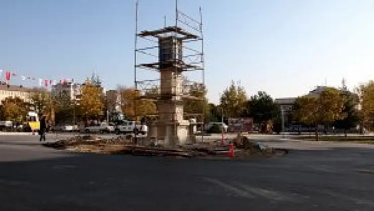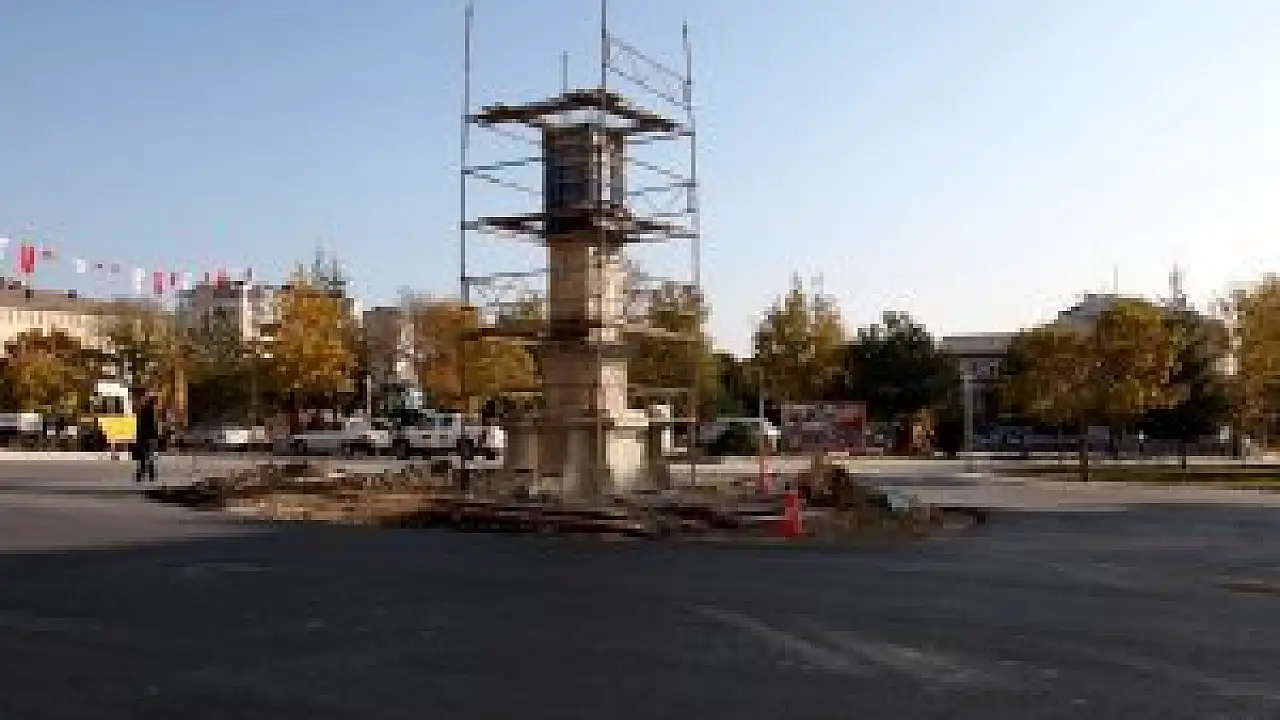 Konya'nın Seydişehir İlçe Belediyesi kavşağında Osmanlı motiflerini yansıtan saat kulesinin yapımına başladı.