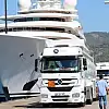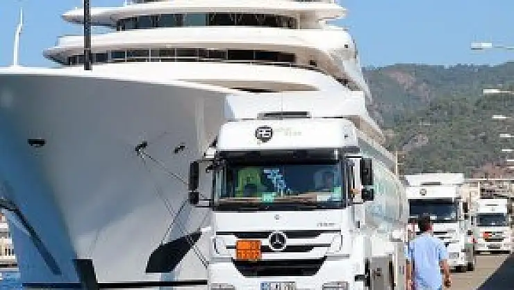 Dev yat, ilçedeki marinalara sığmadığı için vatandaşların ve turistlerin meraklı bakışları altında Marmaris Limanı'nın büyük rıhtımına römorkörler yardımıyla yanaştırıldı.