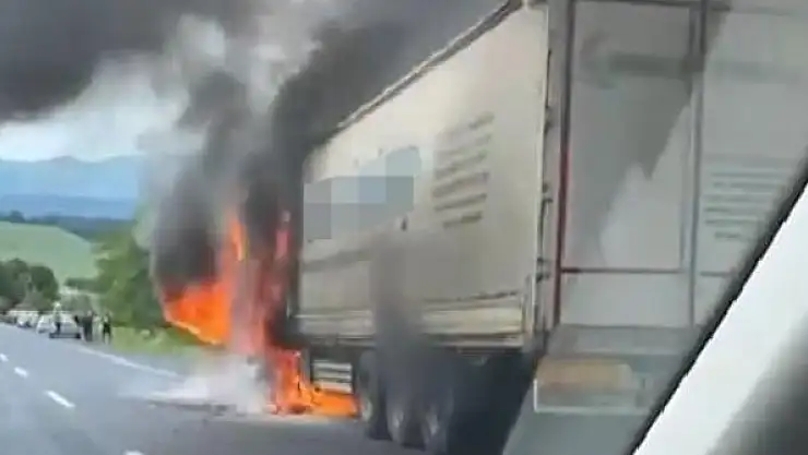Seyir halinde alev alan TIR yandı