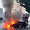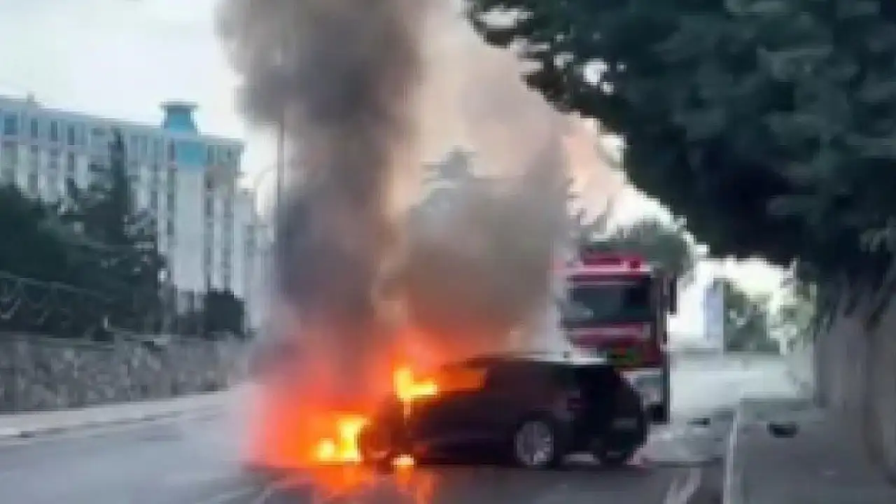 Yangın, itfaiye ekipleri tarafından kısa sürede söndürülürken otomobil kullanılamaz hale geldi. O anlar çevredekilerin cep telefonu kameralarına yansıdı.
