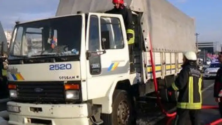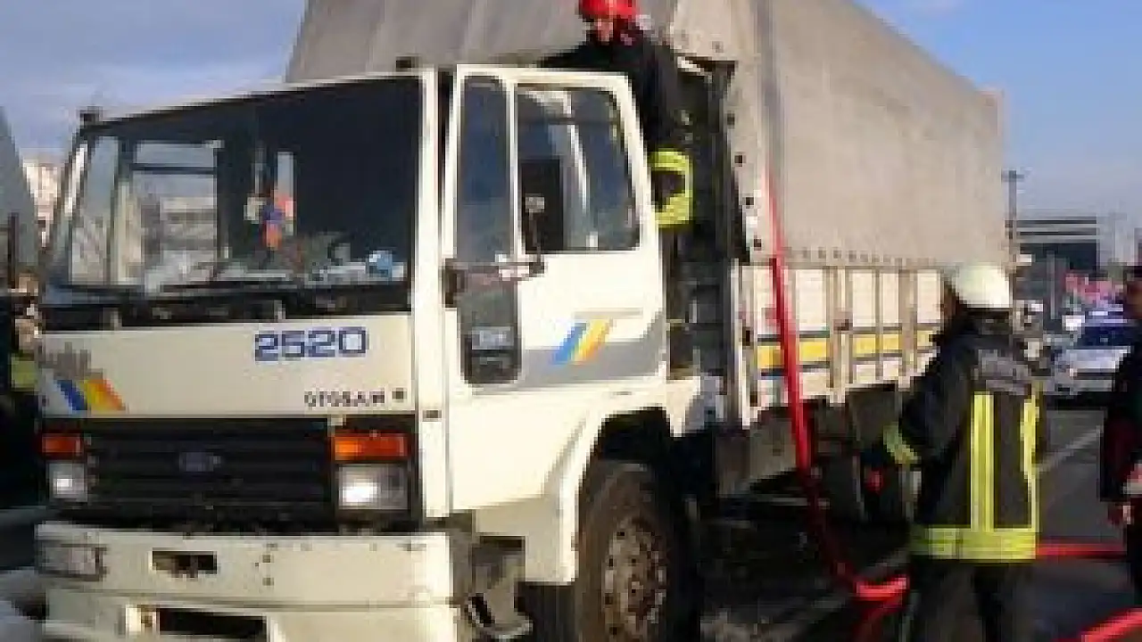 Tekirdağ'ın Çorlu ilçesinde kumaş yüklü kamyondan dumanların çıktığını gören sürücü Tunay Ceylan kamyonunun tamamen yanmasını son anda önledi.