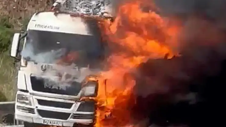 Seyir halinde yanan TIR kullanılamaz hale geldi