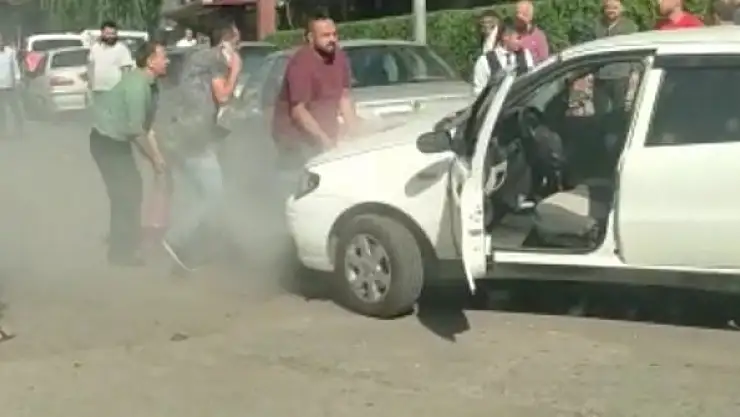 Çevredeki vatandaşların alevlere yangın tüpüyle müdahale ettiği yangında araç sürücüsü sıkışan kaputu açmak için yoğun çaba sarf etti. Birkaç denemesinde başarısız olan sürücü son yaptığı hamlede kaputu açmayı başarırken, yanan parçayı yerinden sökerek yola fırlattı. O anlar ise cep telefonu kamerasıyla anbean kaydedilirken, kısa süreli paniğin yaşandığı olayda araçta maddi hasar meydana geldi.