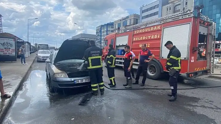 Zonguldak'ta seyir halindeki bir otomobil alev aldı. Ekiplerin kısa sürede müdahale ettiği aracın motor kısmı tamamen yandı.