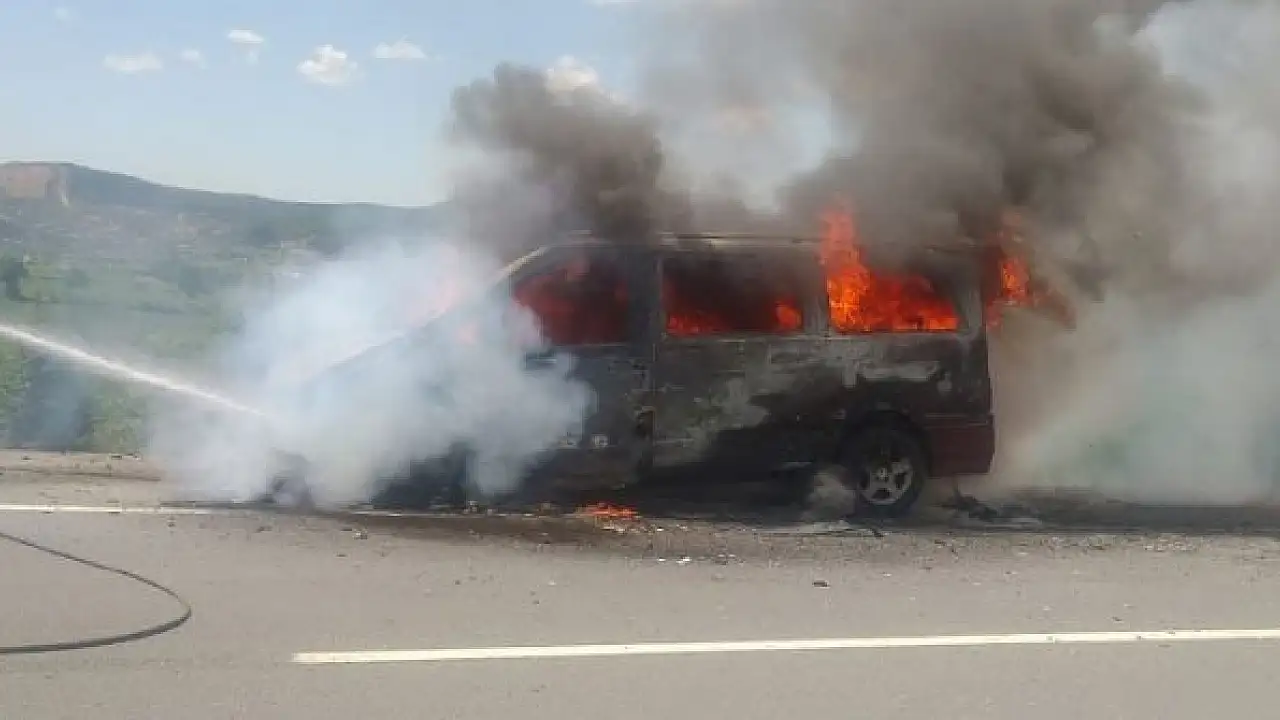 Seyir halindeki araç alev alev yandı