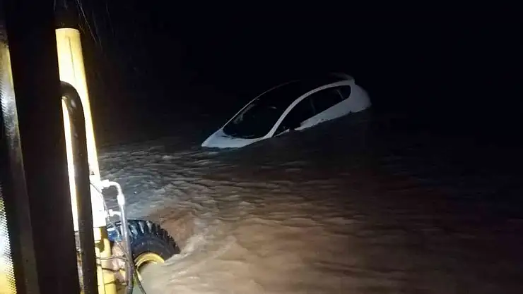 Seyir halindeki araç sel sularının ortasında kaldı