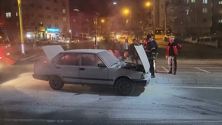 Seyir halindeki aracın motor kısmında yangın çıktı