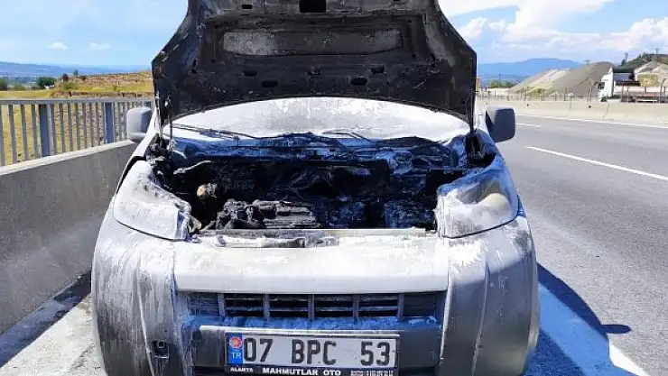 Seyir halindeki aracın motoru yandı