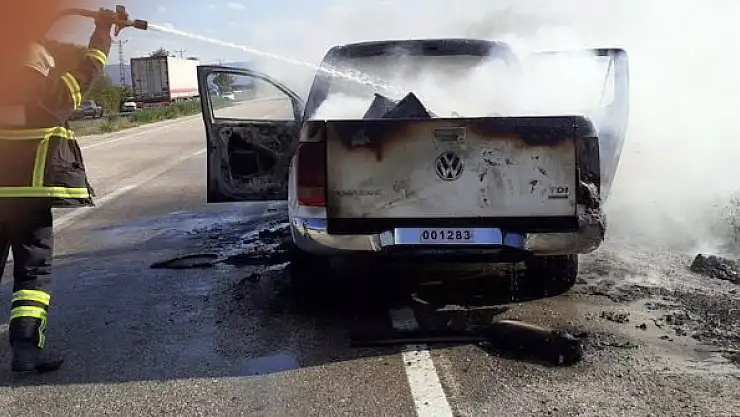 Edinilen bilgiye göre, Sinop'tan Bartın istikametine seyir halindeki askeri araç, Kastamonu'nun Taşköprü ilçesi Eskiatça mevkiine geldiği sırada aniden alev aldı. Sürücü, motoru yanmaya başlayan aracı durdurarak yolun kenarına çekti. İhbar üzerine olay yerine itfaiye ekipleri sevk edildi. İtfaiye ekipleri, yanan araca müdahale ederek söndürdü.