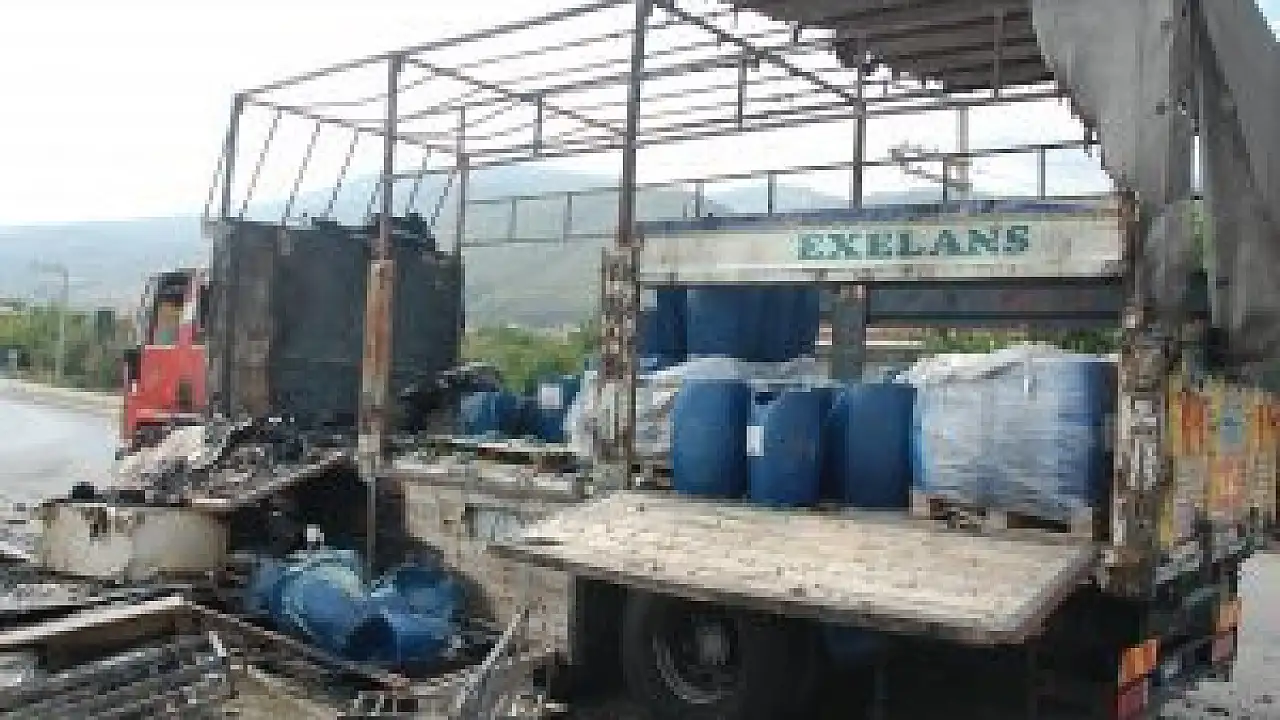 Mustafa K. idaresindeki 31 APF 90 plakalı kamyon, Afyonkarahisar-Konya karayolunun Atakent Mahallesi yakınlarında henüz bilinmeyen nedenle yanmaya başladı.