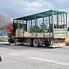 Seyir halindeki kamyon alev alev yandı