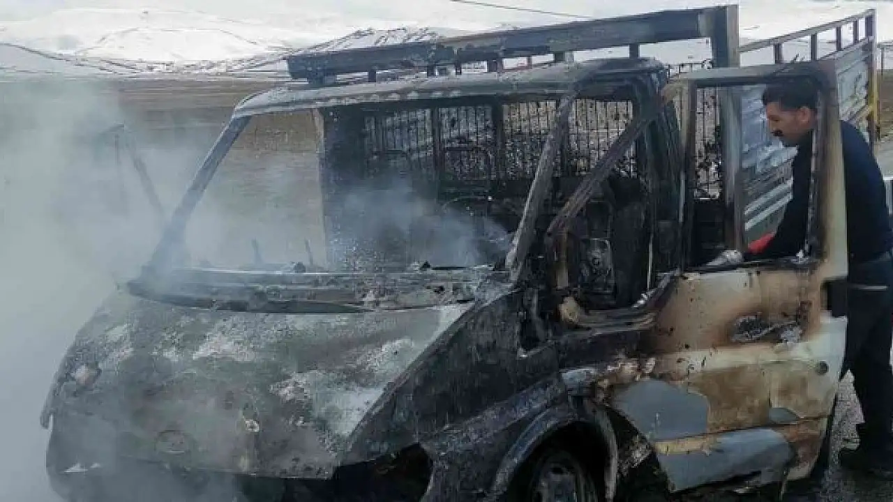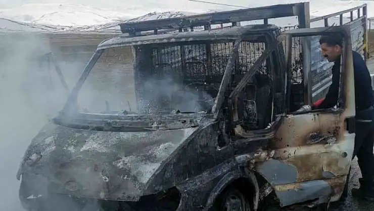 Van-Özalp karayolu üzerinde seyreden bir kamyonet alev alev yanarak kullanılamaz hale geldi.