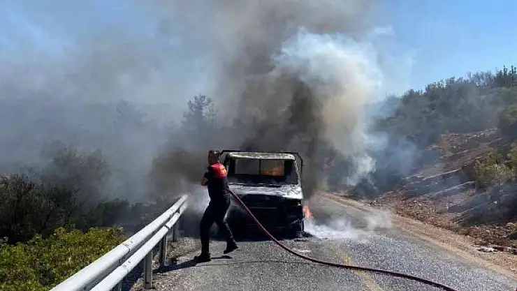 Muğla'nın Bodrum ilçesinde seyir halindeki bir kamyonette çıkan yangında araç kullanılamaz hale geldi.